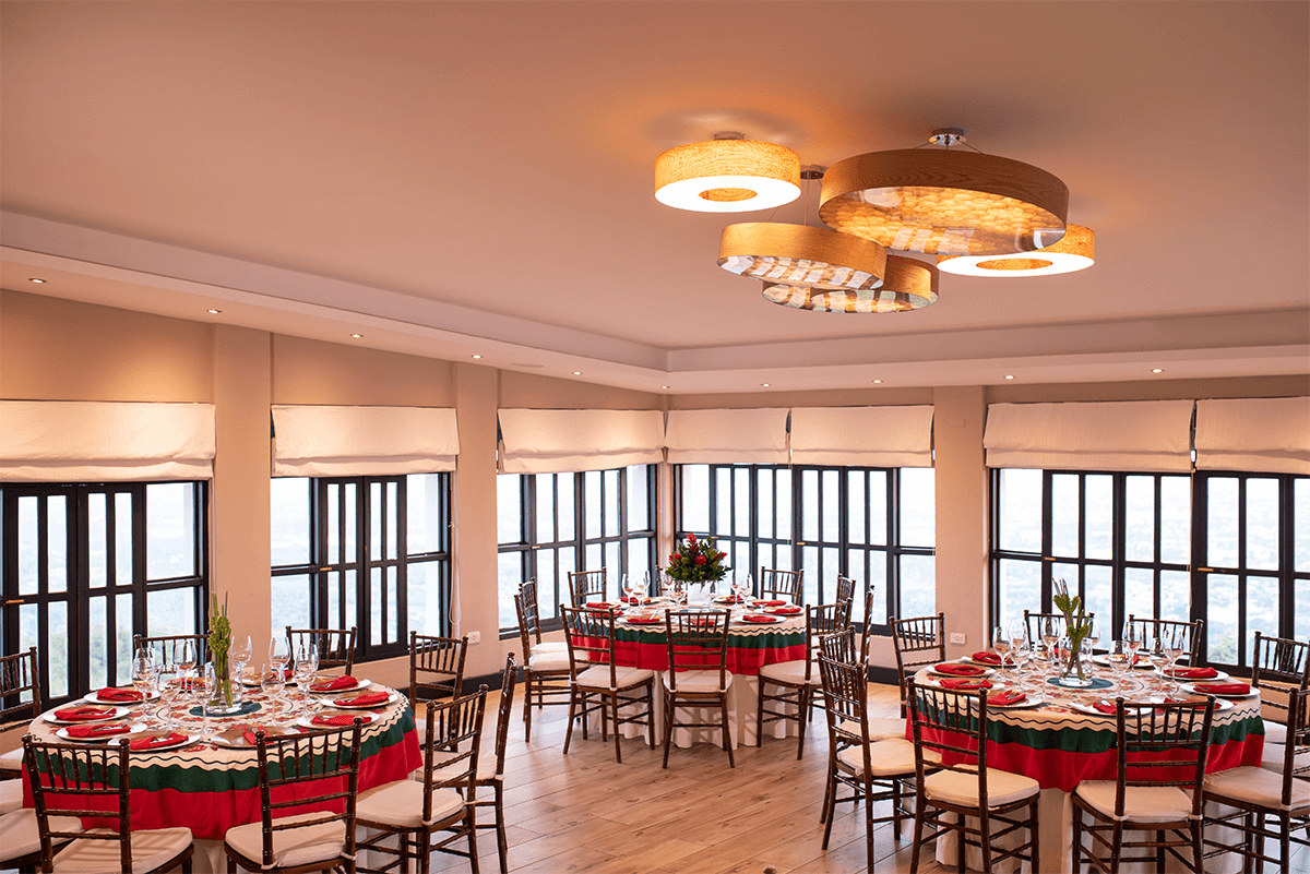 Ambiente acogedor de estilo rústico chic, ubicado en un segundo nivel con vista al valle. Ideal para eventos corporativos más íntimos como cócteles, cenas casuales o almuerzos navideños de cierre de año.