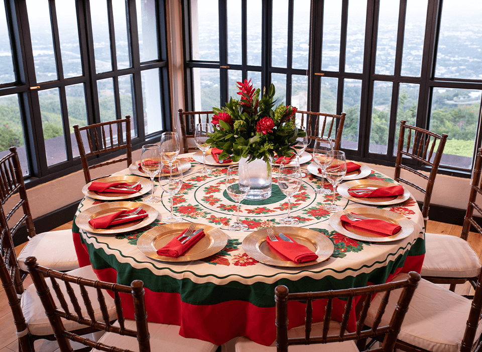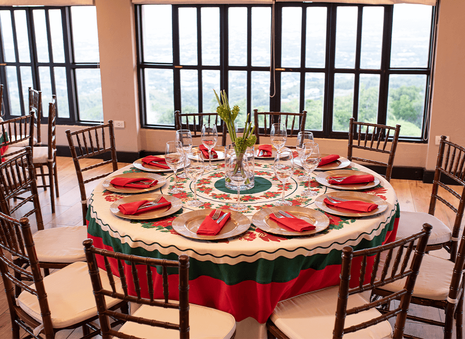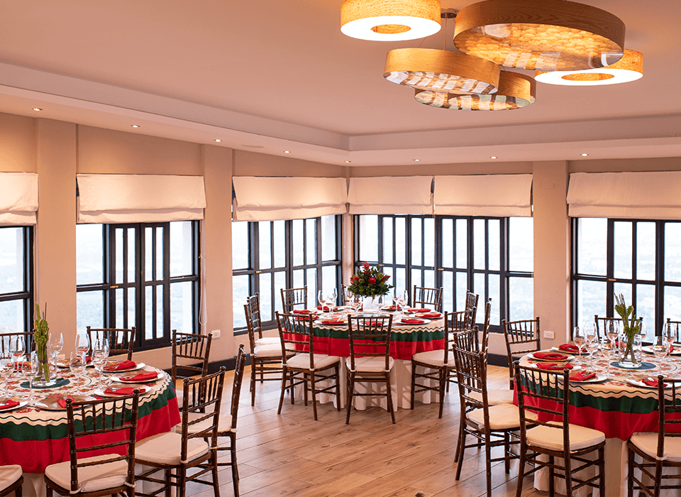 Ambiente acogedor de estilo rústico chic, ubicado en un segundo nivel con vista al valle. Ideal para eventos corporativos más íntimos como cócteles, cenas casuales o almuerzos navideños de cierre de año.